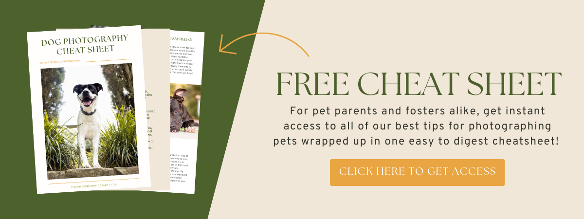 Want to learn my best tips and tricks on how to take great photos of your pups? Click here to get my free cheat sheet dishing some of my pet photography secrets!