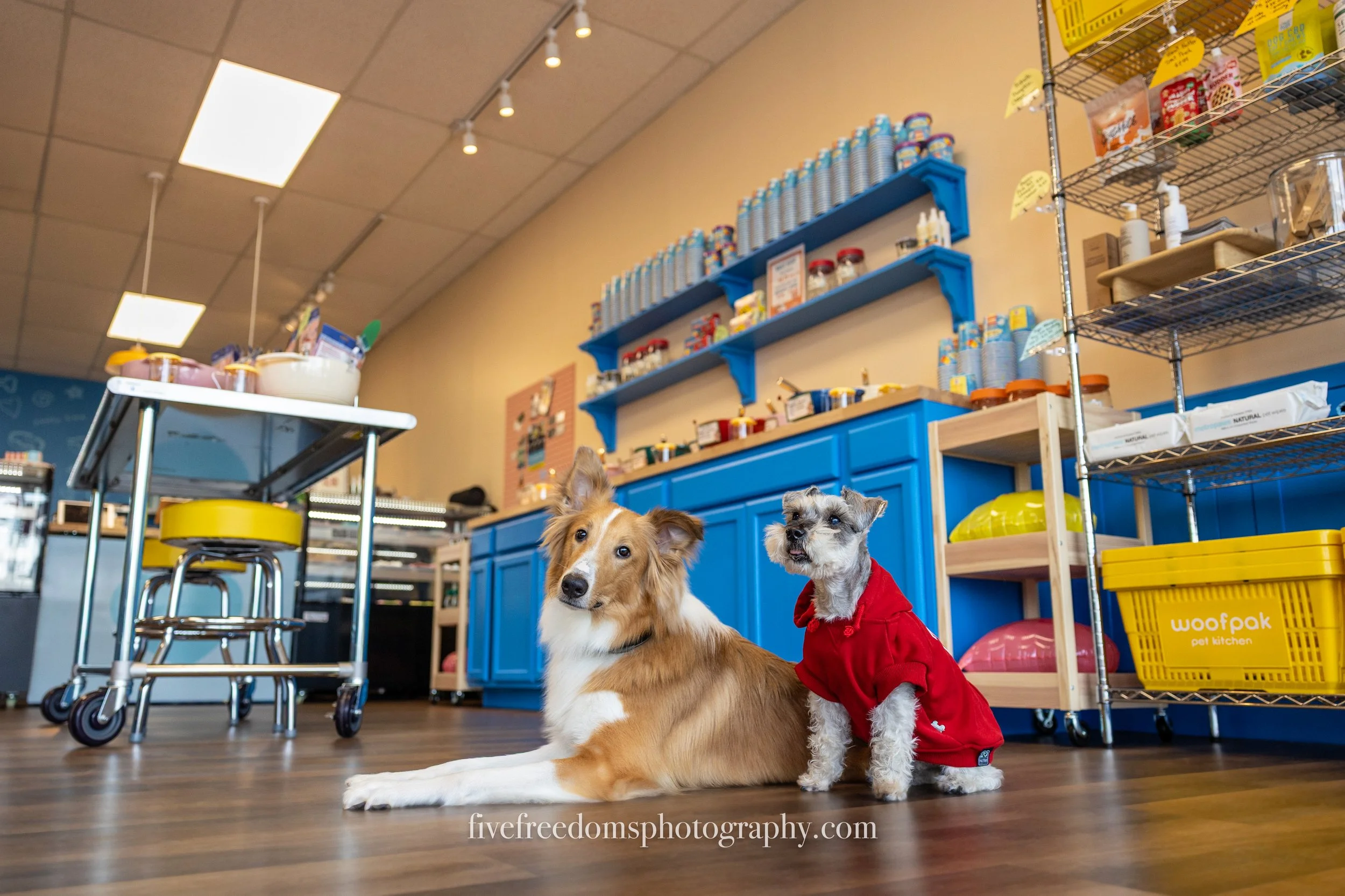Owners, Sau and Mike, wanted to create a space that was welcoming and enjoyable for pups and their people. Unlike chain dog stores that are shoved to the brim with retail, WoofPak is open, colorful, and spacious by intention.